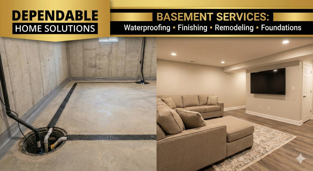Whether you need a simple solution to keep your storage area dry or a full-scale architectural transformation, Dependable Home Solutions provides a Foundation-to-Finish approach. We solve the water issues first, then we build the lifestyle space you’ve always wanted.