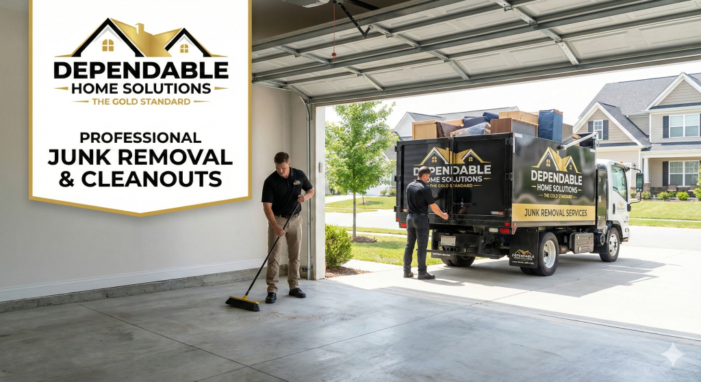 Dependable Home Solutions offers a Full-Service solution. You point to what goes, and our uniformed crew removes it. We carry it out, load the truck, and sweep the area clean before we leave. You don’t lift a finger.