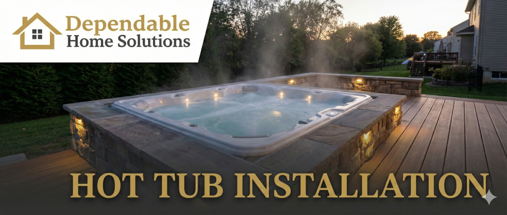 A hot tub full of water and people can weigh over 5,000 pounds. You can’t just place that on an old deck or soft ground. At Dependable Home Solutions, we provide the structural engineering and technical expertise to ensure your spa is safe, level, and powered correctly.