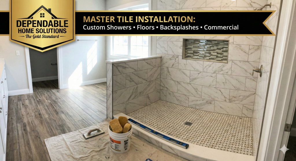 At Dependable Home Solutions, we obsess over what you don’t see. We ensure subfloors are dead level to prevent lipage (uneven tile edges), and we use industry-leading waterproofing systems to guarantee a leak-proof install anywhere in your home.